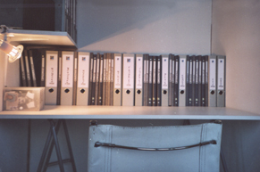 Cette installation est conçue pour présenter l'ensemble des mes archives personnelles (papiers administratifs, photos de familles, essais,...). Ces milliers de documents sont accessibles aux visiteurs. Il ssont archivés dans des classeurs ou dans des boîtes administratives. Tout ces éléments sont plastifiés et rangés de manières rigoureuses.